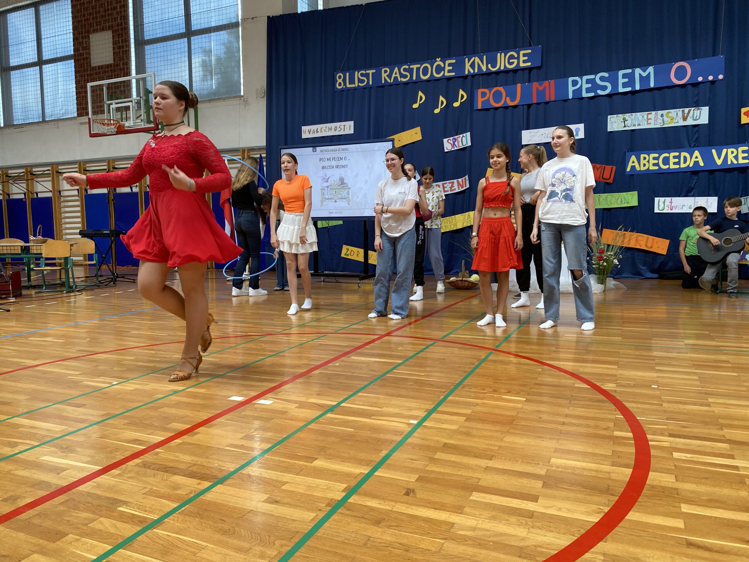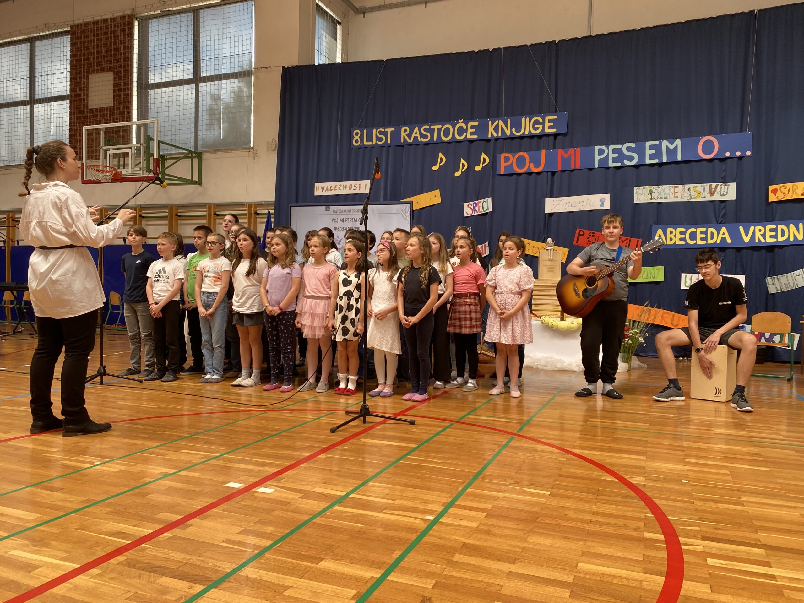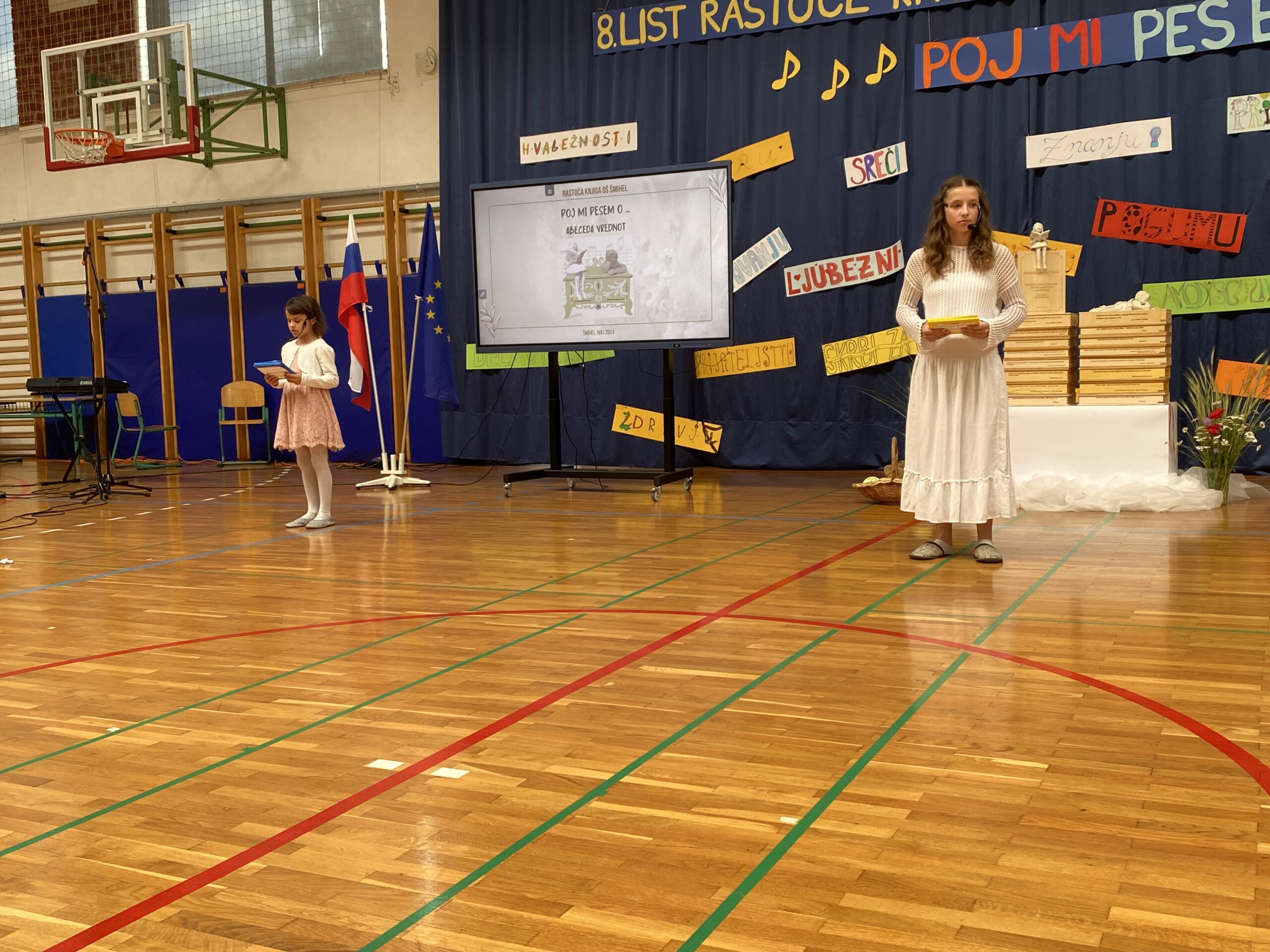 Učenci in delavci Osnovne šole Šmihel so v torek, 28. 5. 2024, s kulturno prireditvijo obrnili 8. list šolskega projekta Rastoča knjiga – vseslovenskega projekta, ki poteka na več šolah in kulturnih ustanovah. Prireditev z naslovom Poj mi pesem o … je potekala pod vodstvom Špele Lumpert in je bila tematsko povezana z abecedo vrednot.