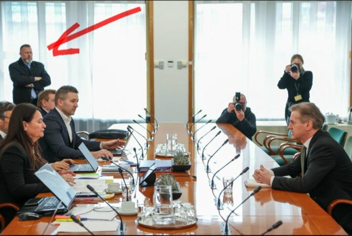 Vendar pa, ni prišel sam. Spremljal ga je varnostnik, kar na družbenih omrežjih močno odmeva. Požar pa danes navaja, da gre za Erika Demirovića, najnovejšega zasebnega partnerja Vesne Janković, nekdanje snahe ljubljanskega župana Zorana Jankovića. Slednja je še vedno močno vpeta v del poslovnega imperija družine Janković. Požar navaja, da za njih “opravlja določene posle”.