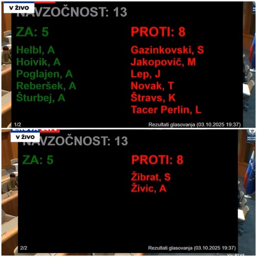 Za so glasovali (5): Alenka Helbl, Andrej Hoivik, Andrej Poglajen, Anton Šturbej (vsi SDS) in Aleksander Reberšek (NSi)