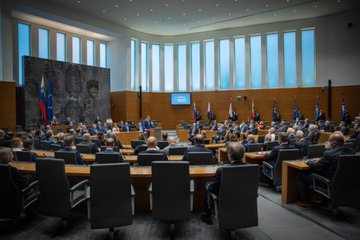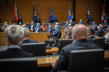 Sledila je slavnostna seja Državnega zbora RS, na kateri je vse prisotne nagovoril predsednik državnega zbora Igor Zorčič.