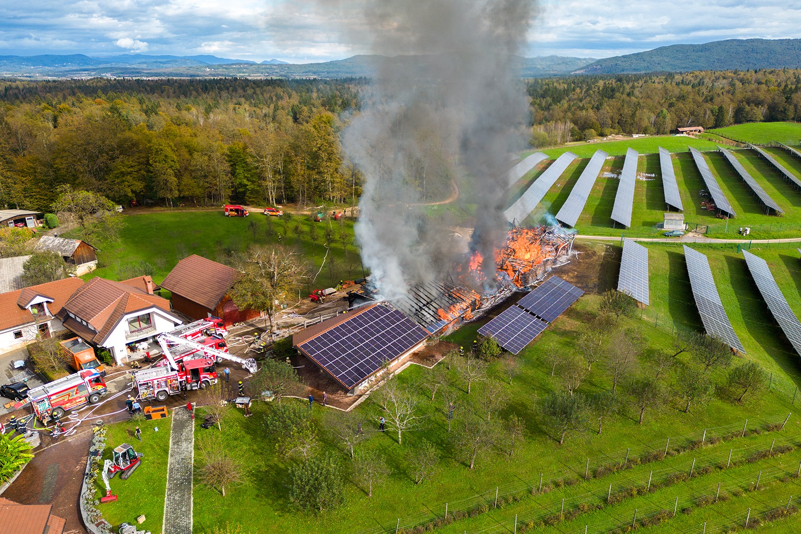 S Policijske uprave Novo mesto pa so danes sporočili, da je po ugotovitvah policistov ogenj zajel večji gospodarski objekt z nameščeno sončno elektrarno na strehi.