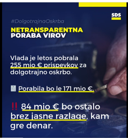 V stranki SDS zato zahtevajo takojšnje razbremenitve za upokojence in za vse ostale moratorij na prispevek, dokler sistem dolgotrajne oskrbe dejansko ne bo vzpostavljen.