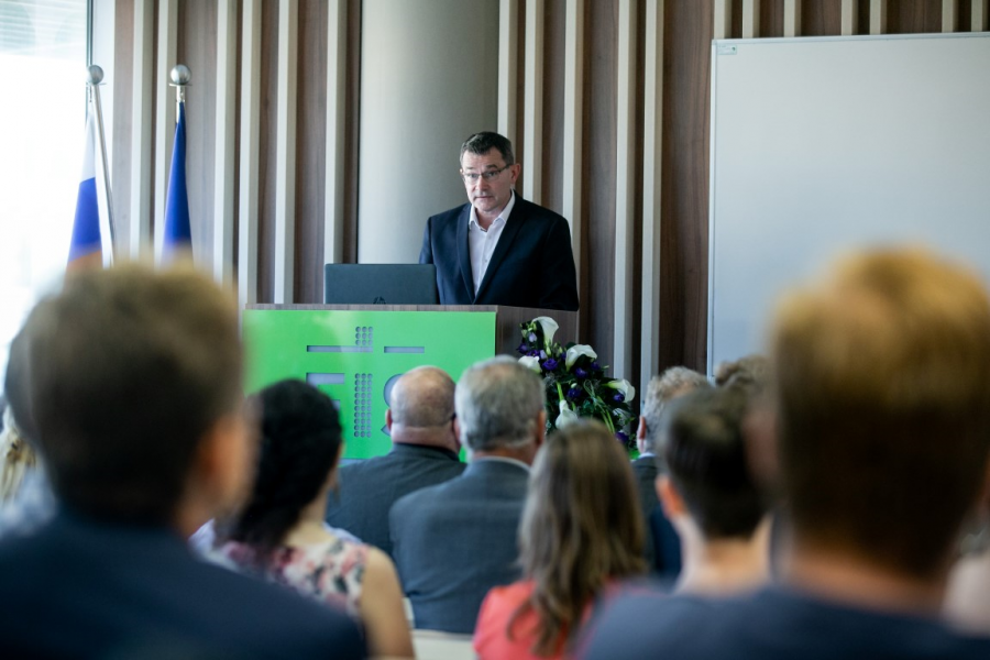 FIŠ je prva javna fakulteta v Novem mestu in edina fakulteta, ki deluje kot samostojni zavod, izven okvira katere od slovenskih univerz. Dekan FIŠ prof. dr. Dejan Jelovac se je v svojem slavnostnem nagovoru ozrl v minulih 10 let, hkrati pa nakazal številne izzive, ki fakulteto čakajo v prihodnosti. “Na Fišu smo že od samega začetka pred desetimi leti izoblikovali jasno poslanstvo, vizijo in vrednote. Celotno obdobje, ki smo ga prehodili, je bilo posvečeno našim individualnim in kolektivnim naporom, da ostanemo zvesti našem poslanstvu in viziji, ter da v vsakdanji praksi akademskega življenja uresničujemo vrednote, katerim smo zavezani. Zavedamo se naše vloge v trajnostnem razvoju lokalnega dolenjskega in slovenskega okolja. Leta 2020 bomo primerljivi z uglednimi akademskimi inštitucijami JV Evrope.«