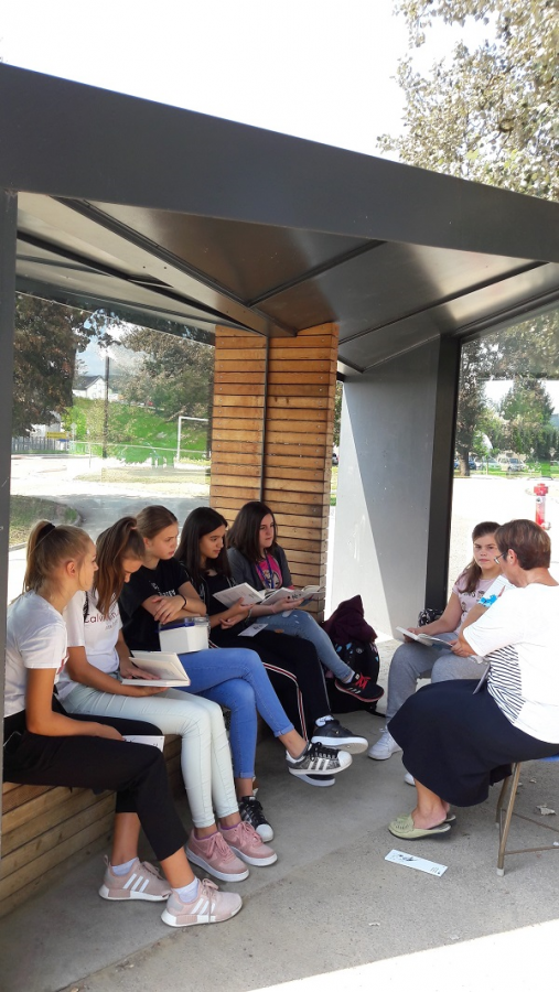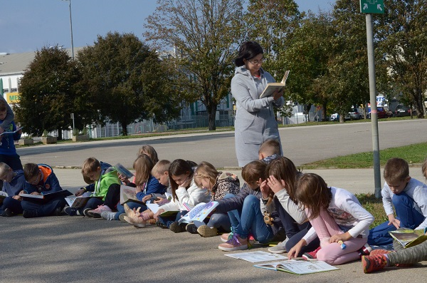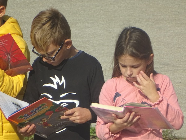 Učenci so s knjižničarko Mojco Balant brali na šolskem podstrešju, pod krošnjami, na avtobusni postaji in na vrtu.