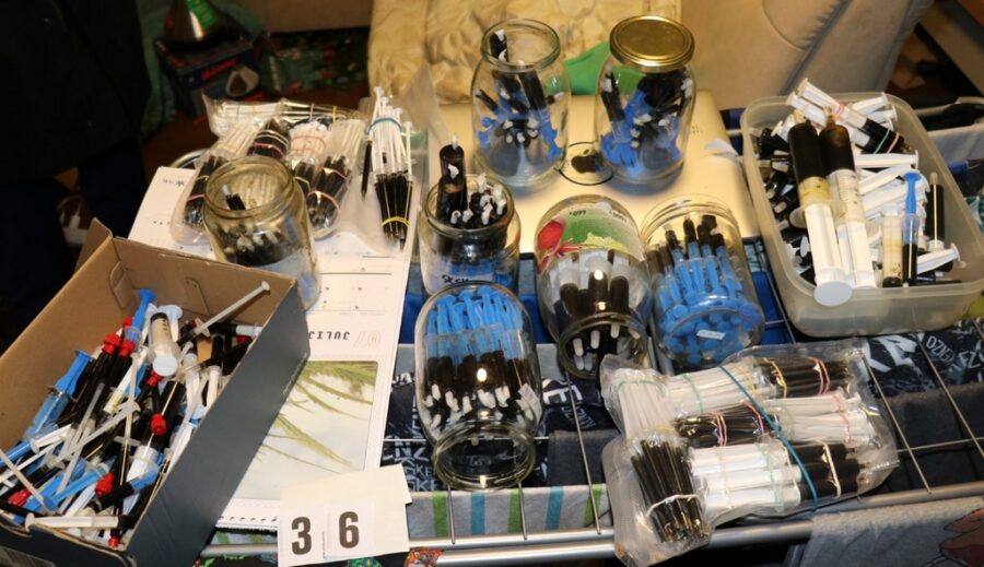 Zasegli so 435 injekcijskih brizg prostornine med 5 in 50 ml, napolnjenih z neznano snovjo, za katero se sumi, da gre za konopljino smolo, konopljin jantar ali hašiševo olje. Osumljencu, ki je sicer brez redne zaposlitve, so zasegli tudi 10.000 evrov gotovine. Zasežene snovi so kriminalisti posredovali v analizo Nacionalnemu forenzičnemu laboratoriju.