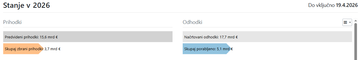 Stanje 19. april 2026: 1,4 milijarde evrov primankljaja