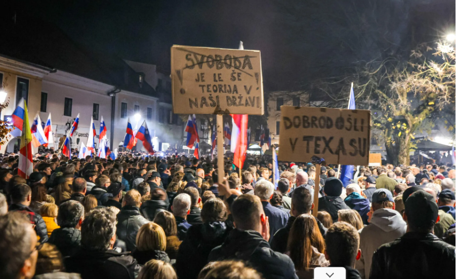 Zbrani so pred tem na shodu z zelo glasnimi žvižgi pospremili govor Roberta Goloba. Tega na trgu praktično ni bilo slišati, saj je množica neprekinjeno žvižgala in Golobu sporočala, da je čas za odhod. Ob tem so na državni STA zanimivo zapisali gladko laž, da je množica na koncu s ploskanjem pozdravila Golobovo napoved o sprejetju posebnega Šutarjevega zakona. Tega namreč na trgu zaradi nenehnega žvižganja ni slišal nihče, kaj šele, da bi kdo na trgu ploskal.