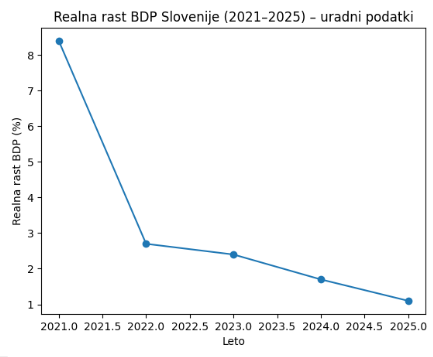 Podatki o gospodarski rasti Slovenije v letih od 2021 do 2025: