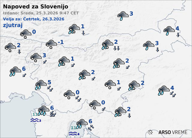Padavine se bodo od severa hitro širile proti jugu. Meja sneženja se bo ob tem spuščala, zato lahko v drugem delu noči ter v četrtek zjutraj v precejšnjem delu Slovenije pričakujemo zimske razmere.
