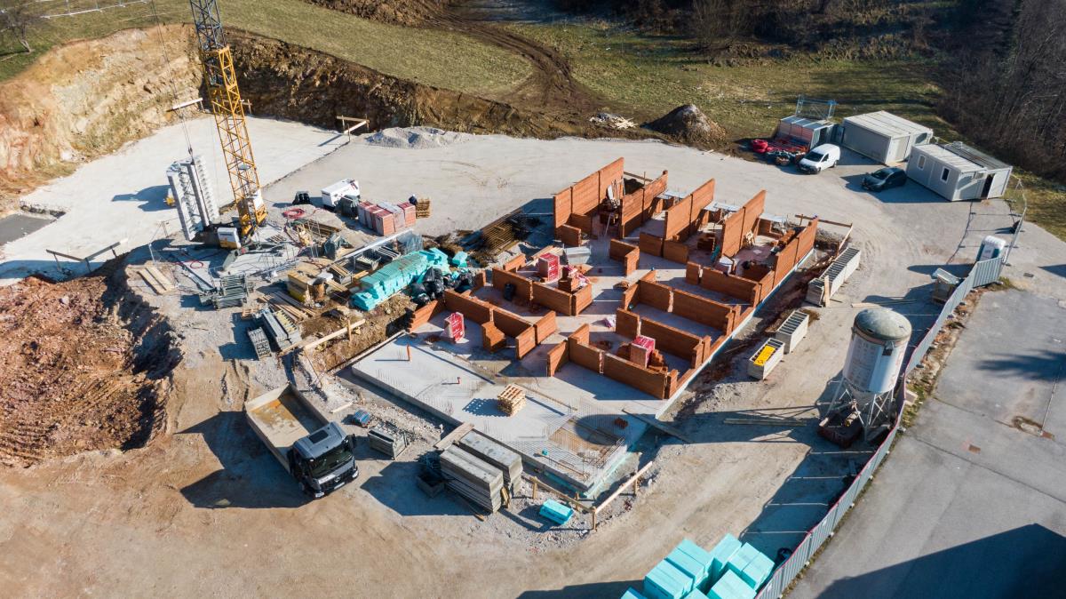 Gradnja doma za starejše v Višnji Gori vidno napreduje. Trenutno poteka gradnja pritlične etaže prvega od treh objektov, ki sestavlja stavbni kompleks doma. Sočasno se ureja kanalizacija za drugi objekt ter izkop za tretji objekt.