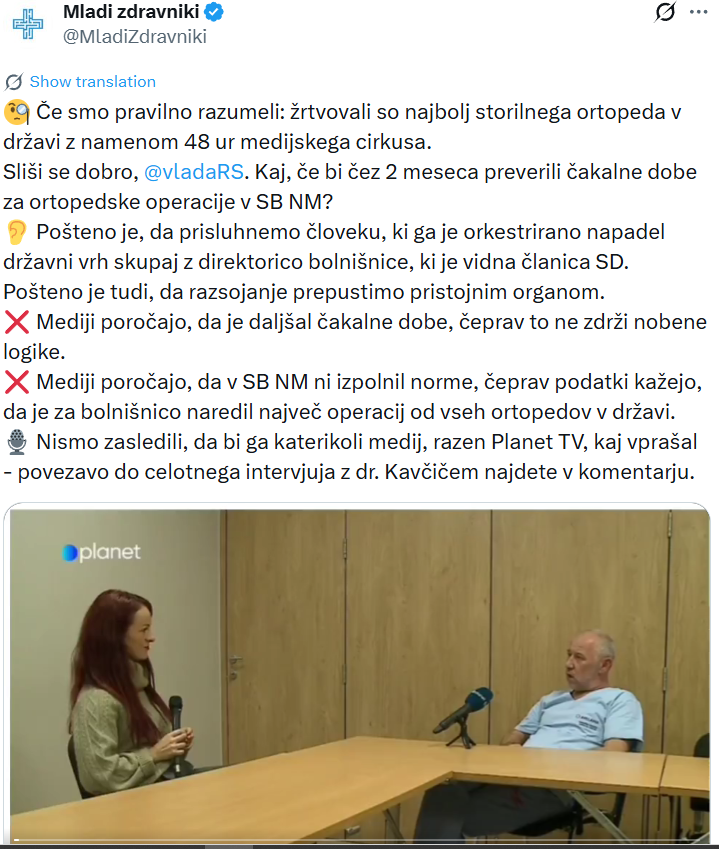 - Če smo pravilno razumeli: žrtvovali so najbolj storilnega ortopeda v državi z namenom 48 ur medijskega cirkusa. Sliši se dobro, vlada RS,