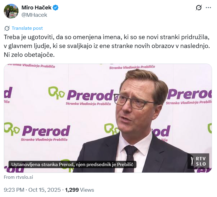 Tako je na omrežju X zapisal dr. Miro Haček, politolog in profesor na Fakulteti za družbene vede.