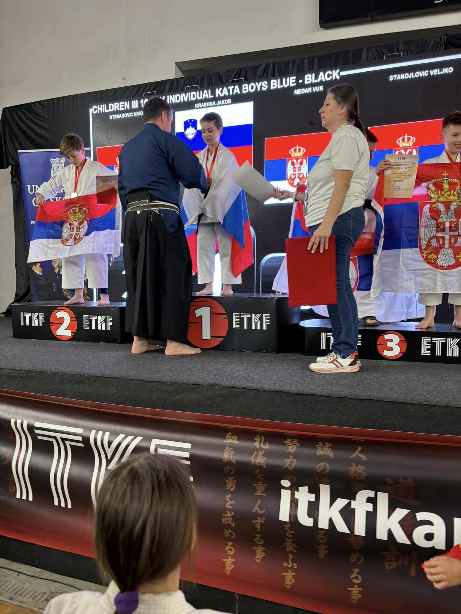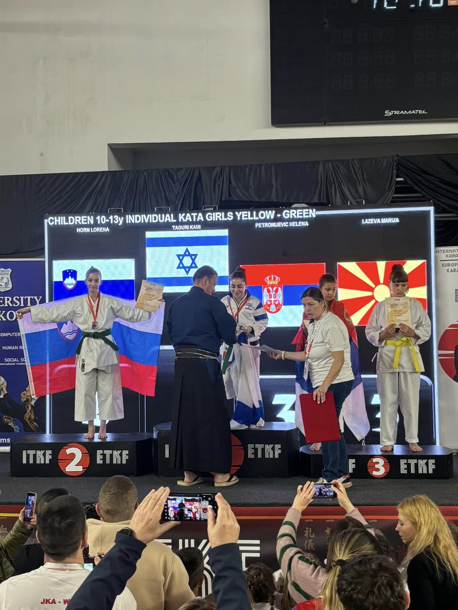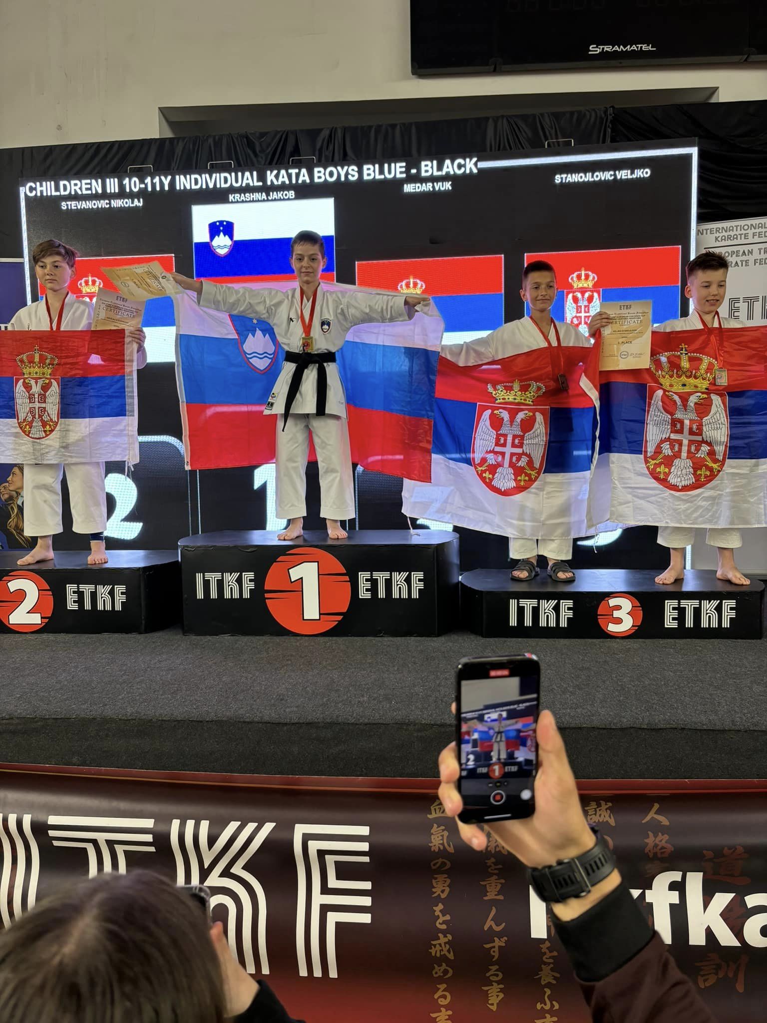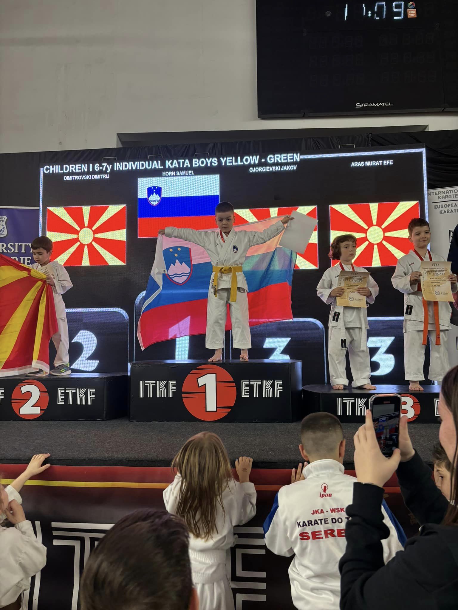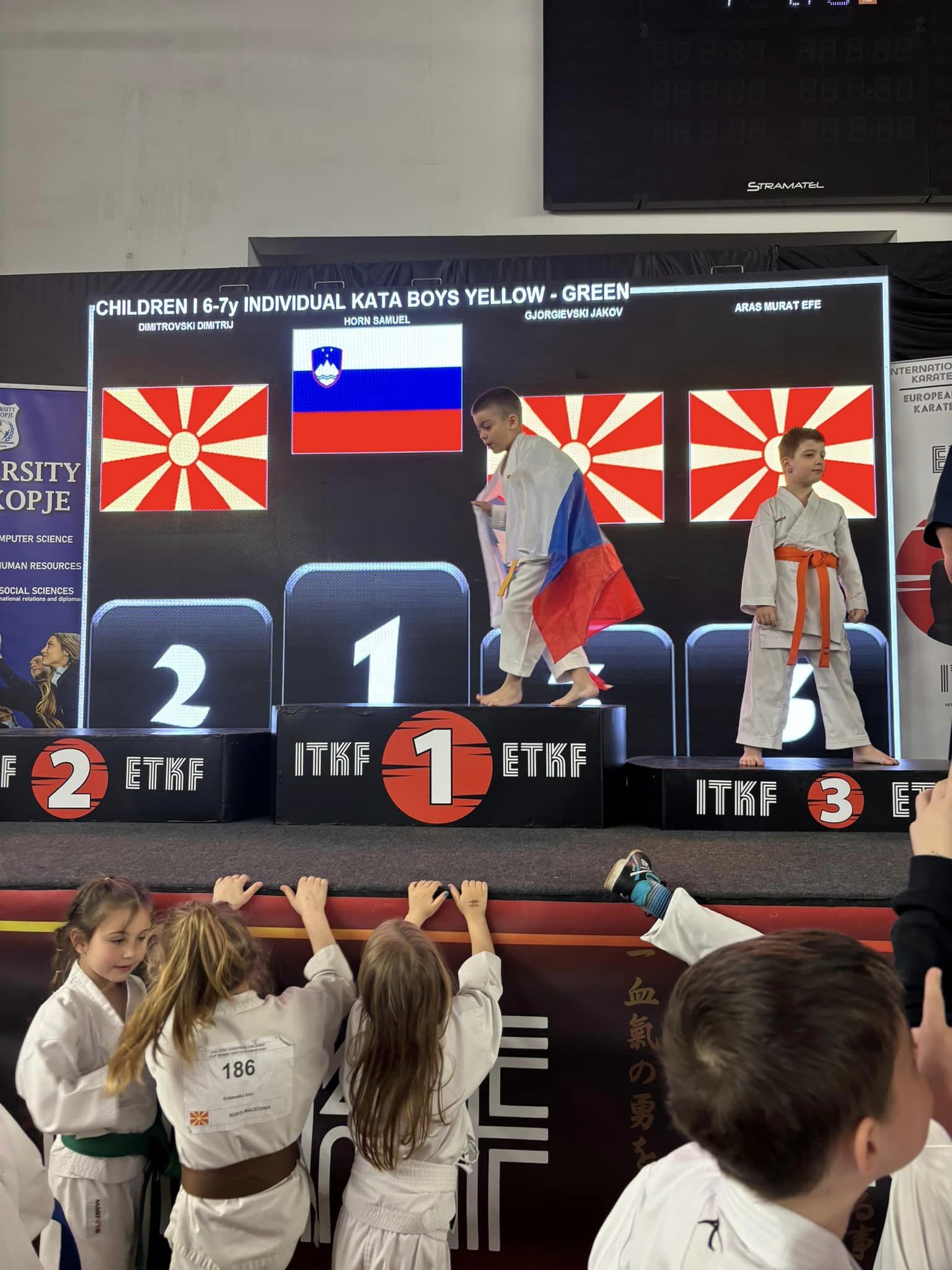 Na evropskem pokalu za otroke, je v soboto kar dvakrat zaigrala slovenska himna. Na najvišjo stopničko je v kategoriji dečkov 6-7 let stopil šestletni Samuel Horn, ki je v treh krogih z oceno 5:0 suvereno premagal vse svoje nasprotnike in zasluženo osvojil 1. mesto.