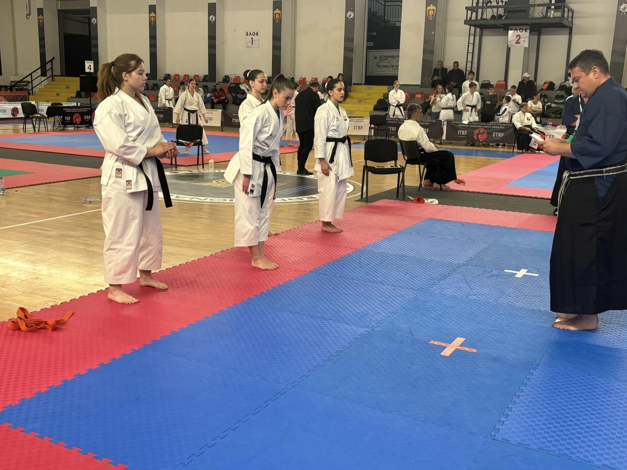 V nedeljo so tekmovalci nastopali na ETKF evropskem prvenstvu. Na tatami so tako v kategoriji kadetinj stopile tri naše tekmovalke: Ester Horn, Ema Krašna in Pia Jovanovič. Vse tri so svoje nastope opravile odlično, žal pa ocene sodnikov za Emin in Piin nastop niso zadostovale, da bi se uvrstile v finalne nastope štirih najboljših tekmovalk.