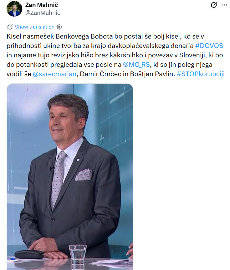 Tako je po sinočnji Tarči na X zapisal Žan Mahnič, poslanec in nekdanji državni sekretar za nacionalno varnost.
