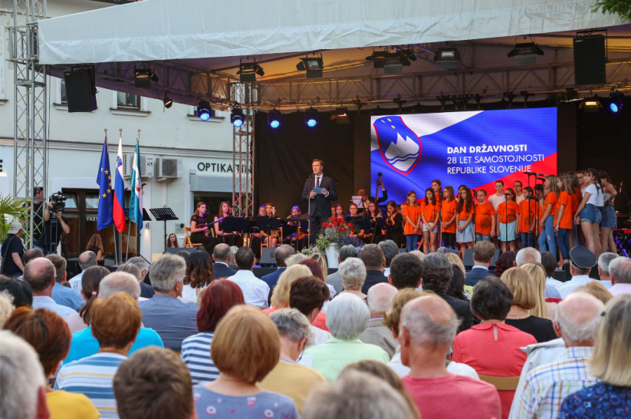 Sinoči, na predvečer rojstnega dne naše države, je v središču Kočevja potekal Festival domoljubne pesmi Mati Domovina. Pred tem je bila krajša občinska slovesnost ob Dnevu državnosti, na kateri je zbrane nagovoril kočevski župan dr. Vladimir Prebilič.