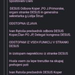– IVAN RATOŠA (predsednik odbora DESUS Koper, član PO JP in delegat kongresa DeSUS), ki »ODSTOPA IZ VSEH FUNKCIJ V STRANKI DESUS« in »NEPREKLICNO ODSTOPA IZ STRANKE DESUS«.
