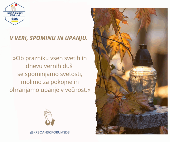 V izjavi Krščanski forum SDS opozarja, da narod, ki spoštuje svoje mrtve, ostaja živ, in da tisti, ki pretrga vez s preteklostjo, izgubi korenine. Prav zato nas praznik vseh svetih in dan spomina na mrtve vabita, da se ob svetlobi sveč spomnimo svojih pokojnih z vero, hvaležnostjo in upanjem. Sveča, ki jo prižgemo, ni le izraz žalosti, temveč simbol zaupanja, da tema nikoli nima zadnje besede.