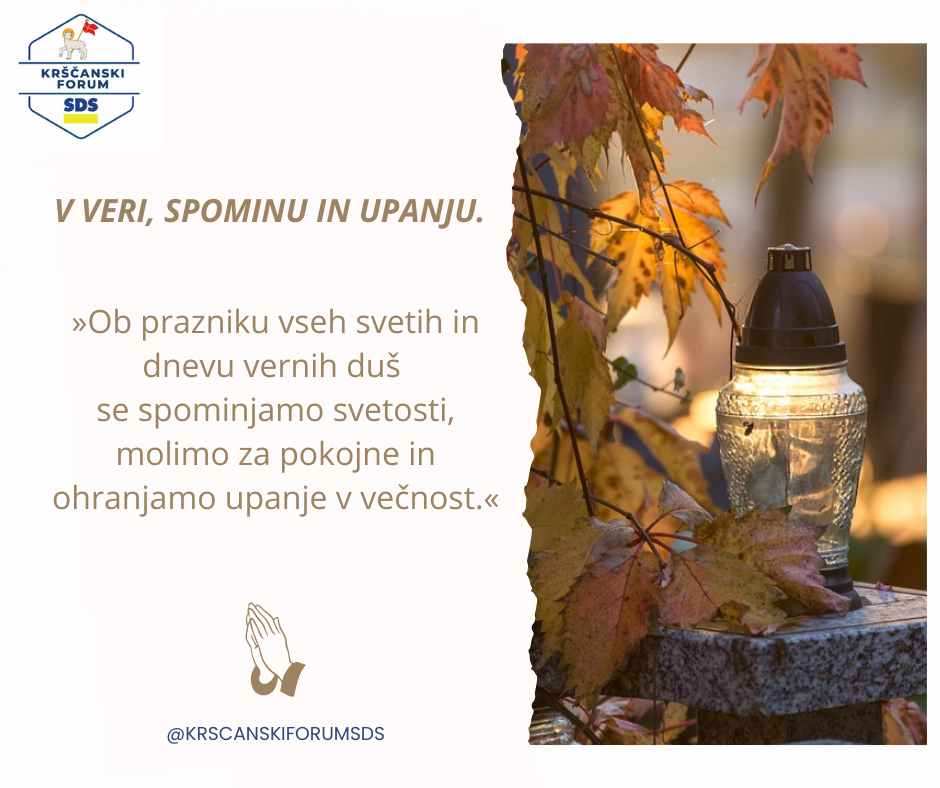 V dneh, ko slovenski narod s spoštovanjem in hvaležnostjo stopa na pokopališča ter se v tišini spominja svojih dragih, so iz pošiljamo izjavo Krščanskega foruma Slovenske demokratske stranke (SDS) ob prazniku vseh svetih in dnevu spomina na mrtve poslali naslednjo izjavo: