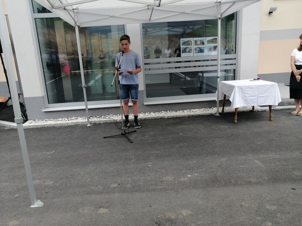 Pred slavnostnim odprtjem objekta in rezom traku, ki so ga skupaj prerezali župan Benčina, poslanec Tanko in Grdiša, je blagoslov novega objekta opravil župnik Bojan Traven.