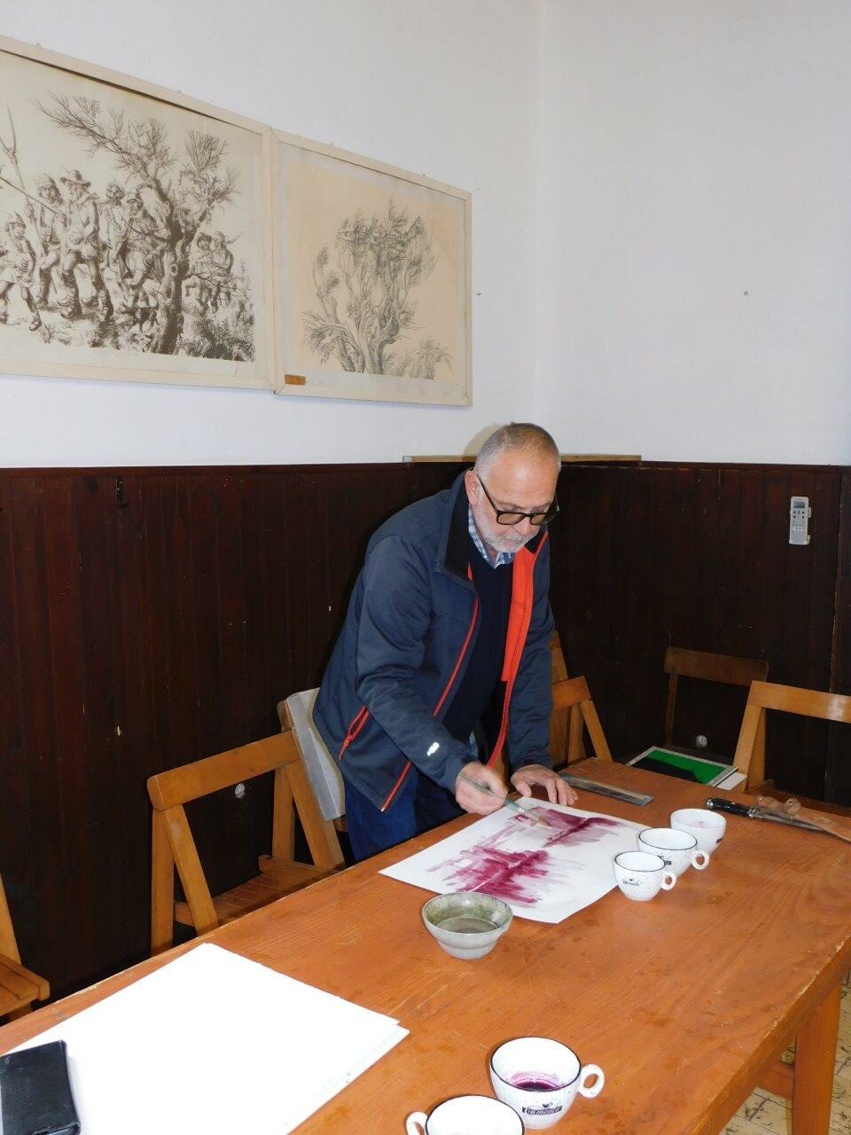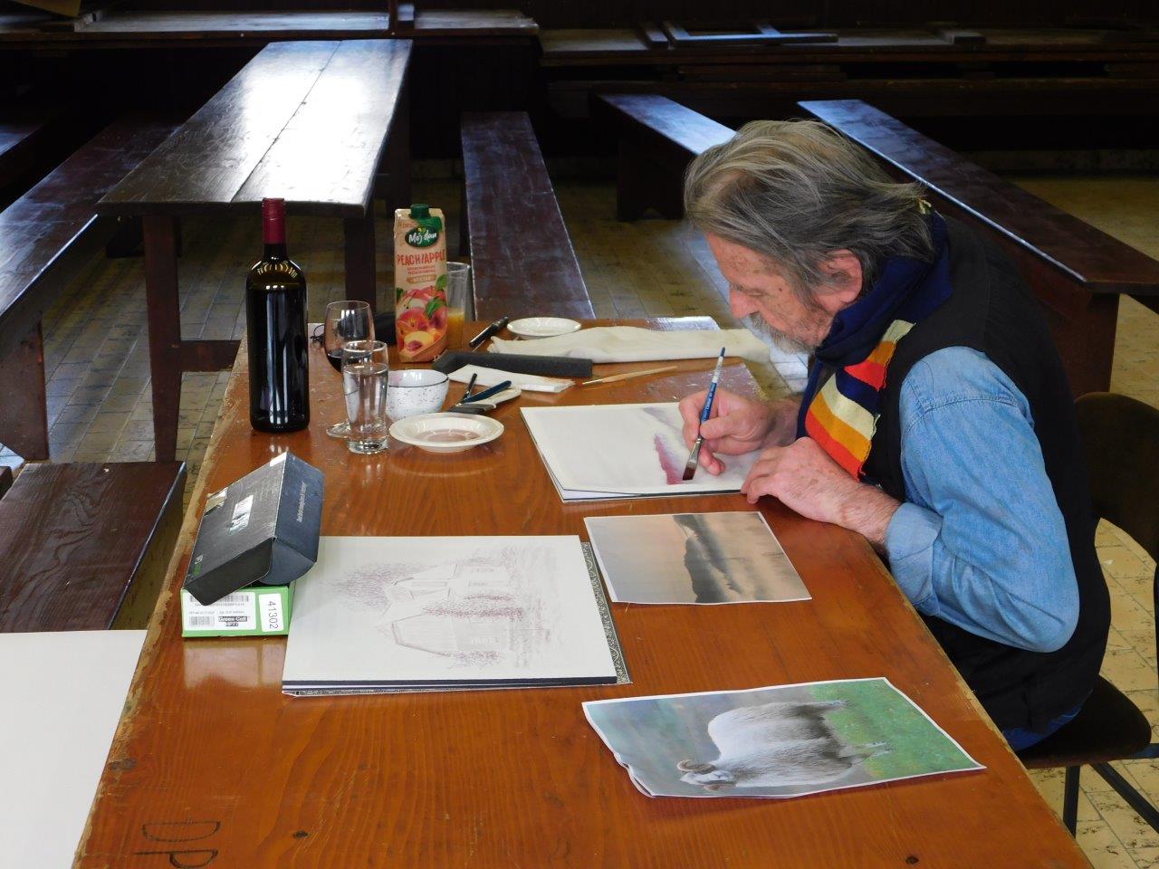 Ključni mentor pri izvedbi kolonije na kateri se slika izključno z vini, pa je Ivan Kiš, upokojeni arhitekt iz Zagreba. Ta je ostal ves čas zvest in se še vedno udeležuje dogodka ter v Adlešičih preživi martinski konec tedna.