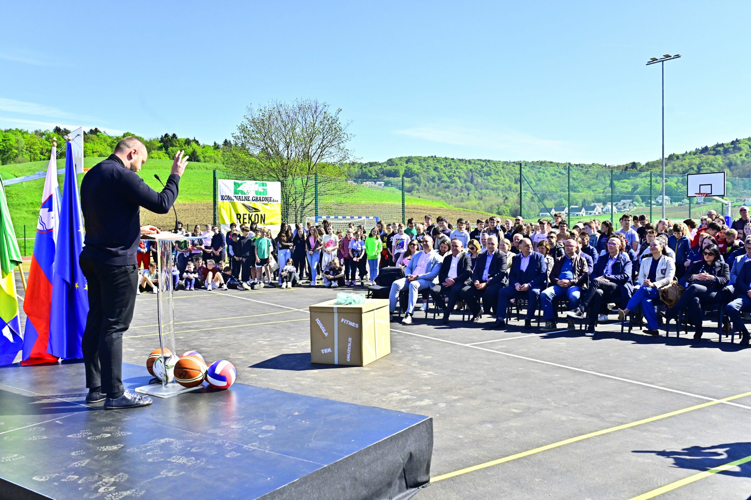 Osrednji del slovesnosti so zaznamovali nagovori župana Andreja Kastelica ter državnega sekretarja na ministrstvu za gospodarstvo, turizem in šport Dejana Židana. Dogodek je zaokrožil še blagoslov igrišča, ki ga je opravil domači župnik Blaž Franko.