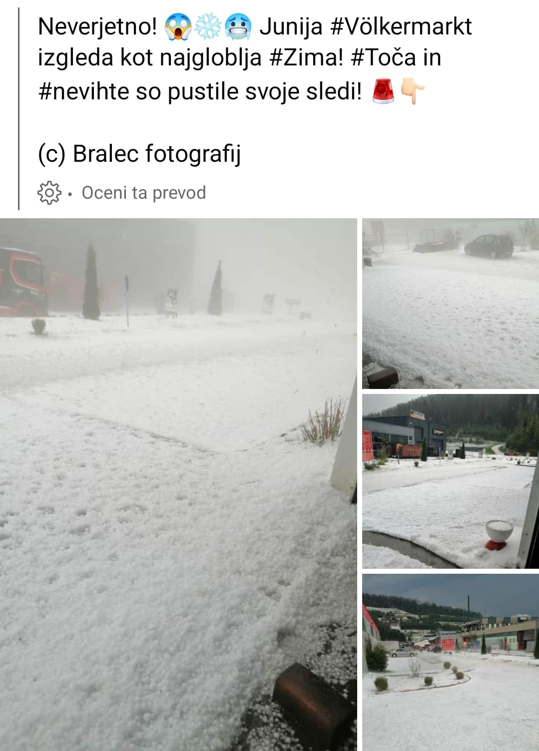 O neurju in toči poročajo še iz Dravograda, Slovenj Gradca, Raven na Koroškem, Dupleka, Maribora, Poljčan, Polzele, Prevalj, Celja, Štor, Vojnika, Žalca, Šentjurja, Kamnika, Mislinje, Litije, Podčetrtka, Zasavja, Šmarja pri Jelšah, Sevnice, Brežic.