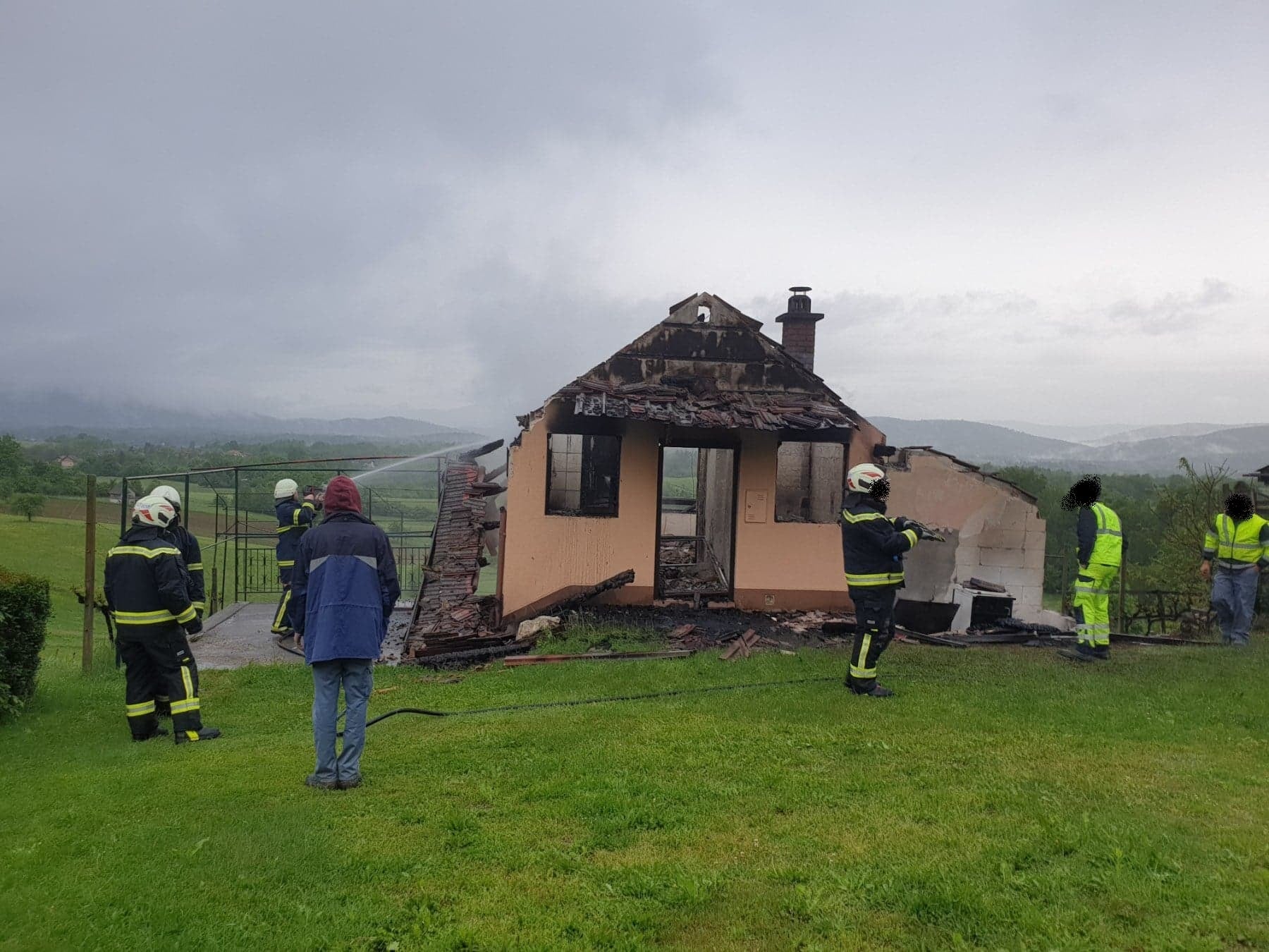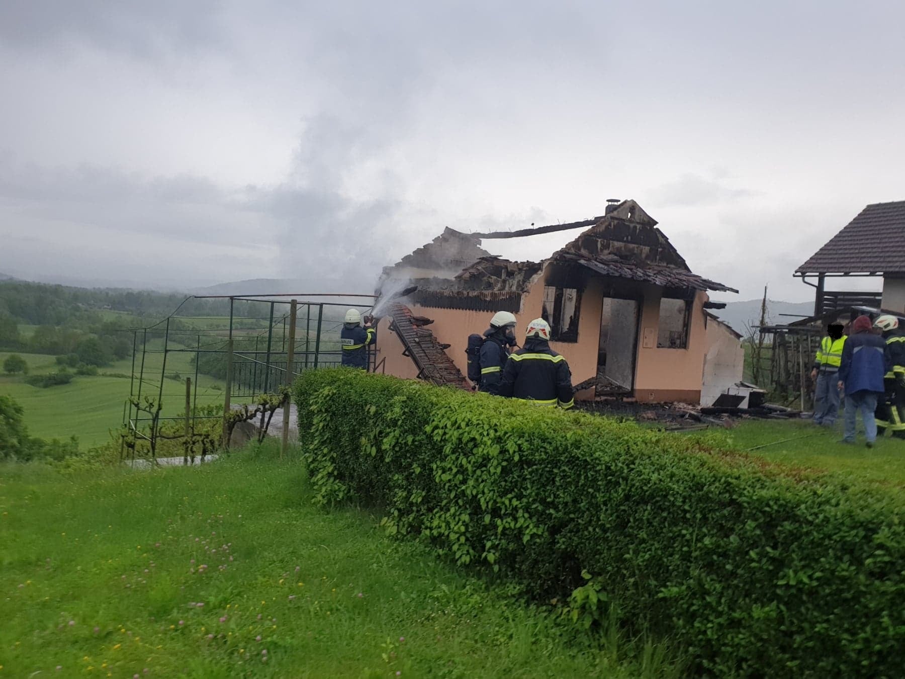 Posredovali so gasilci dveh prostovoljnih gasilskih društev, Hrast-Perudina in Vinica. Gasilci so pogasili in prekopali posamezna tleča žarišča. Dežurni delavec Elektro podjetja je odklopil električno energijo, dežurni delavec Komunale Črnomelj pa je zaprl vodo.