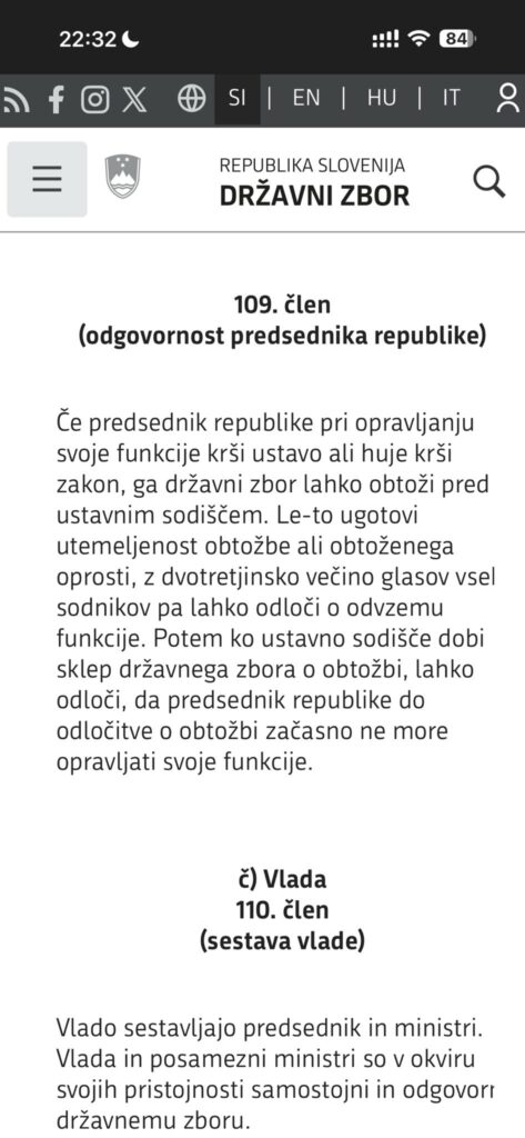 Kaj se zgodi, če predsednik republike krši ustavo ali zakon? 109. člen Ustave Republike Slovenije (URS)