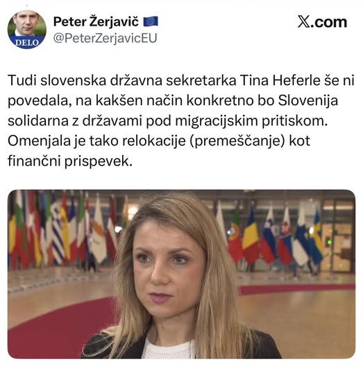 Tako se je Janez Janša, predsednik SDS, odzval na sporočila o tem, da je Golobova državna sekretarka Tina Heferle v Bruselj prenesla sporočilo slovenske vlade o realokaciji (premeščanju) nezakonitih migrantov znotraj EU ali celo finančnem prispevku (plačevanju) za njihovo namestitev v kateri od drugih držav.