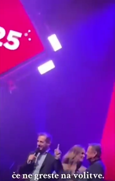 Gre za Zorana Jankovića in Roberta Goloba. Iz posnetka je razvidno, da se je Golob hvalil z božičnico in ljudi hujskal proti tistemu ta drugemu – očitno – Janezu Janši.