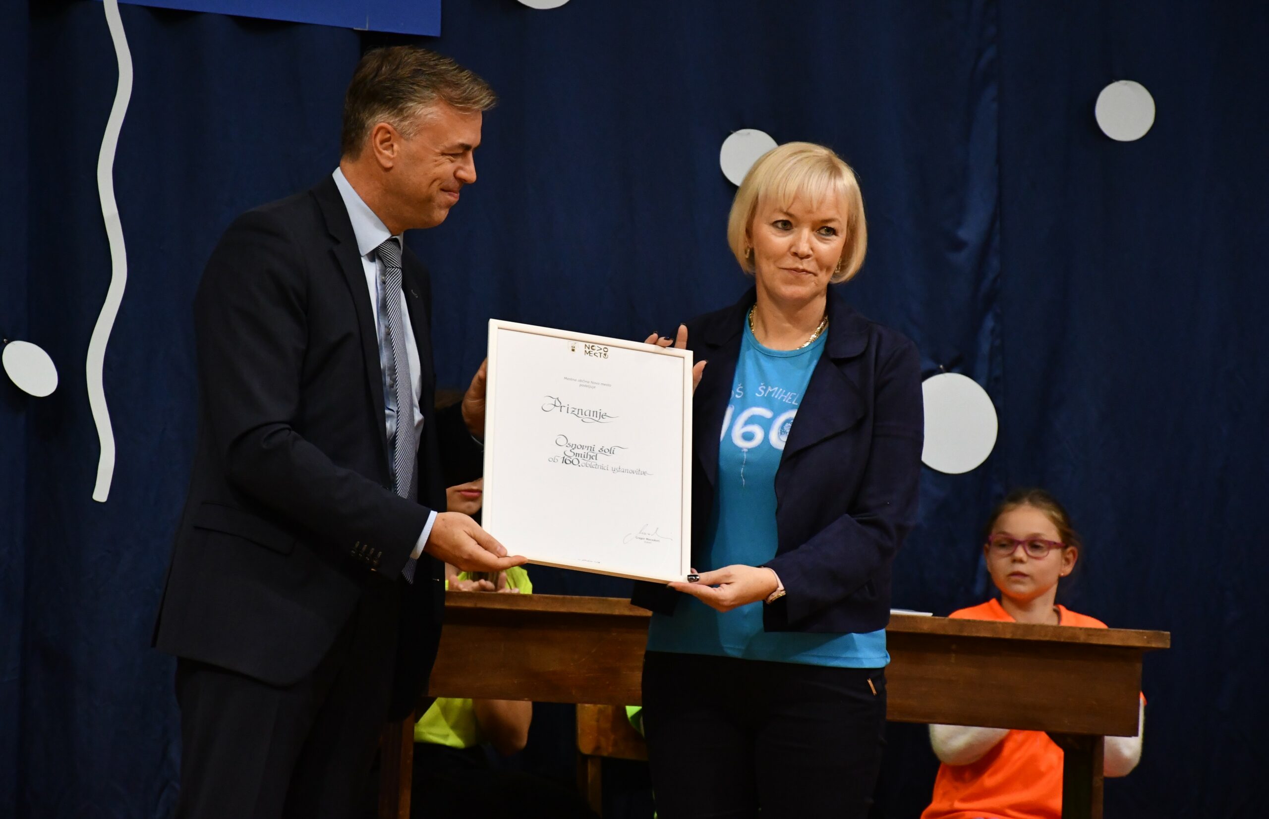 Novomeški župan je v svojem govoru pohvalil našo predanost in trud ter poudaril, da sta le-ta dragocena in nepogrešljiva, šola pa je pravi ponos našega mesta. Prisotne je razveselil še z novico o pridobitvi novih 650 m² površin ter ravnateljici izročil priznanje MO Novo mesto.