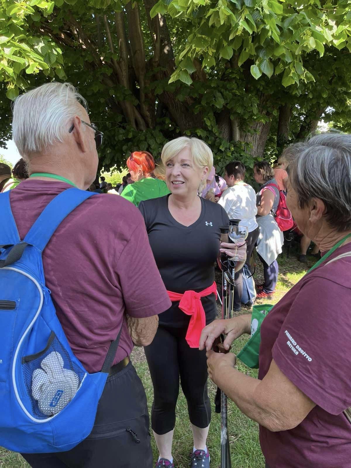 Na 11. pohodu Po Slakovi poti sta bila navzoča tudi Peter Gregorčič, nosilec liste za evropske volitve Slovenske ljudske stranke (SS) in kandidatka Nina Strah (SLS).