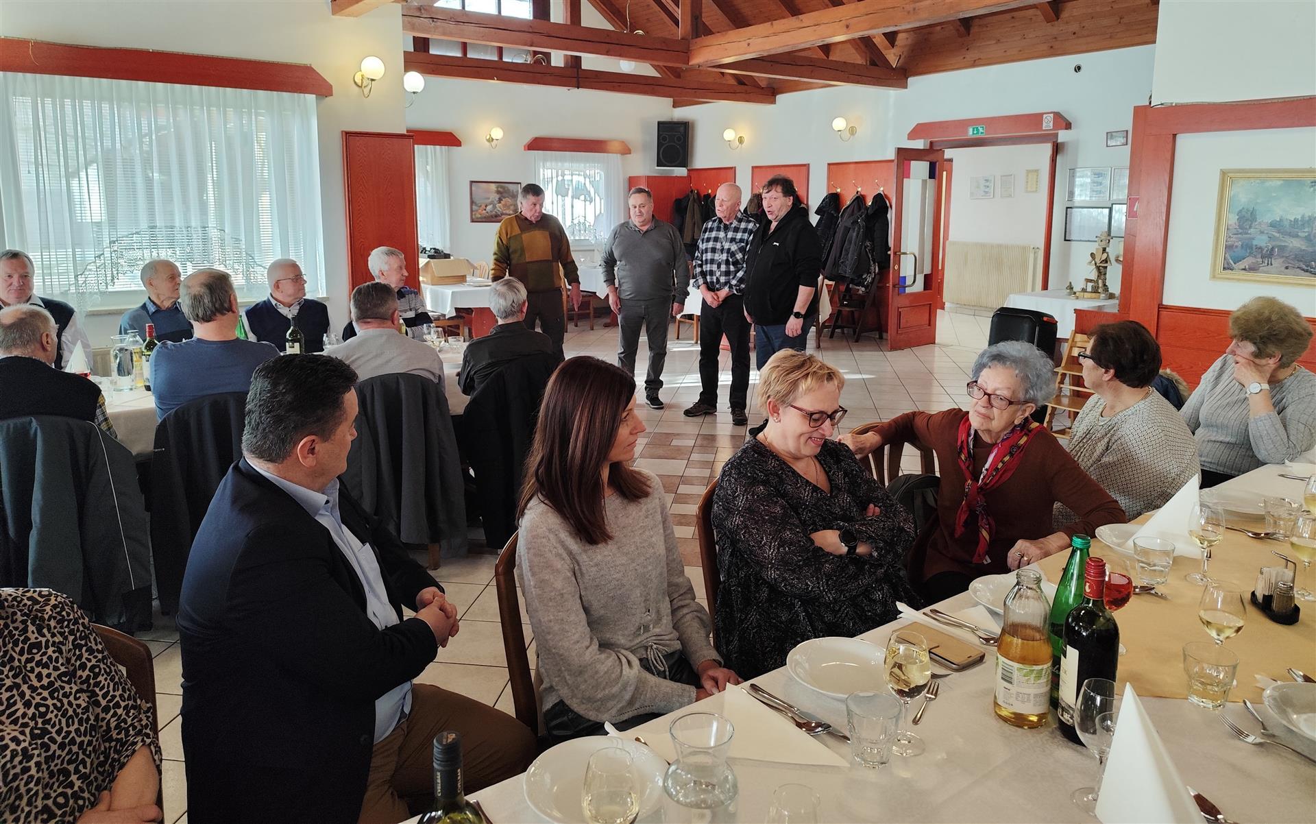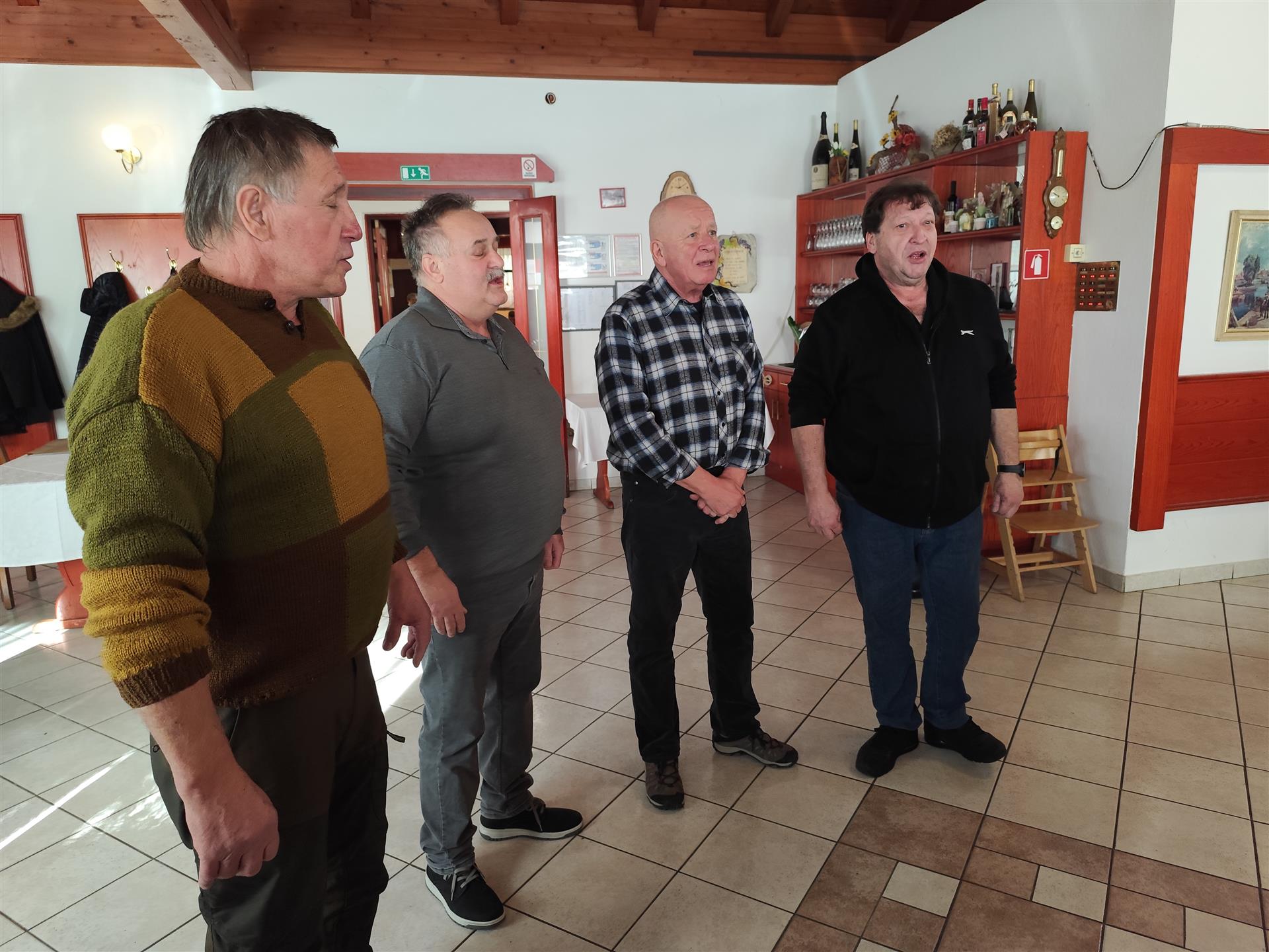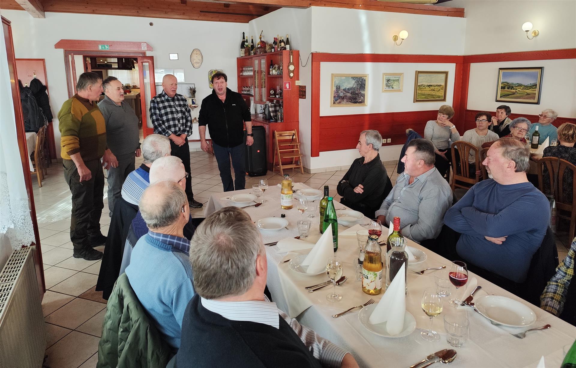 Druženje v gostilni Pri Štefanu na Malem Slatniku so popestrili ljudski pevci. Član skupine Vaški zvon je tudi upokojeni komunalec Jože Cesar. Ob ubranem petju in dobrem razpoloženju je bilo druženje prijetno in veselo.