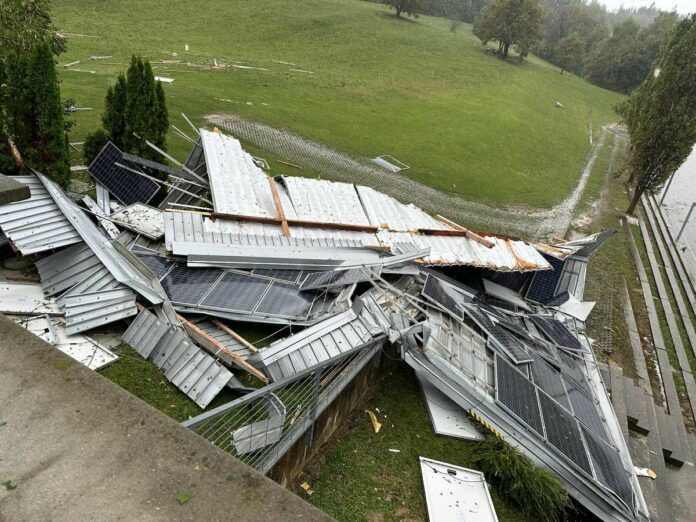 V desetih minutah je padlo 34,5 milimetrov dežja, veter je pihal hitrostjo 90 kilometrov na uro.