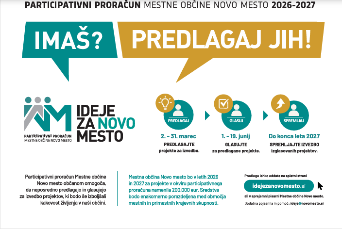 Aktualne informacije glede participativnega proračuna Mestne občine Novo mesto najdete na spletni strani www.idejezanovomesto.si
