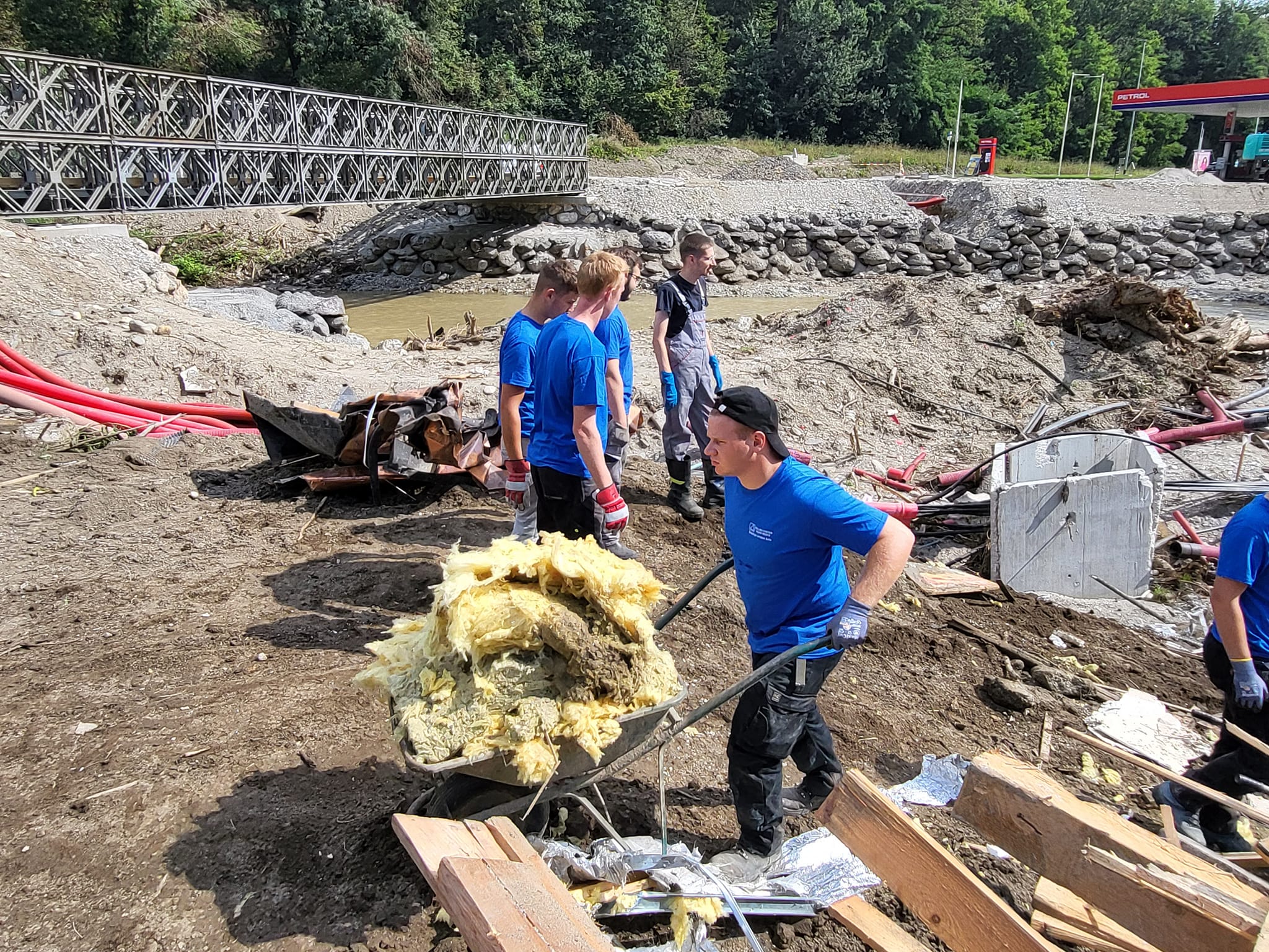 Ekipa dijakov Šolskega centra Novo mesto danes v veliki čistilni akciji reke Meže po poplavah pomaga koroškim gasilcem.