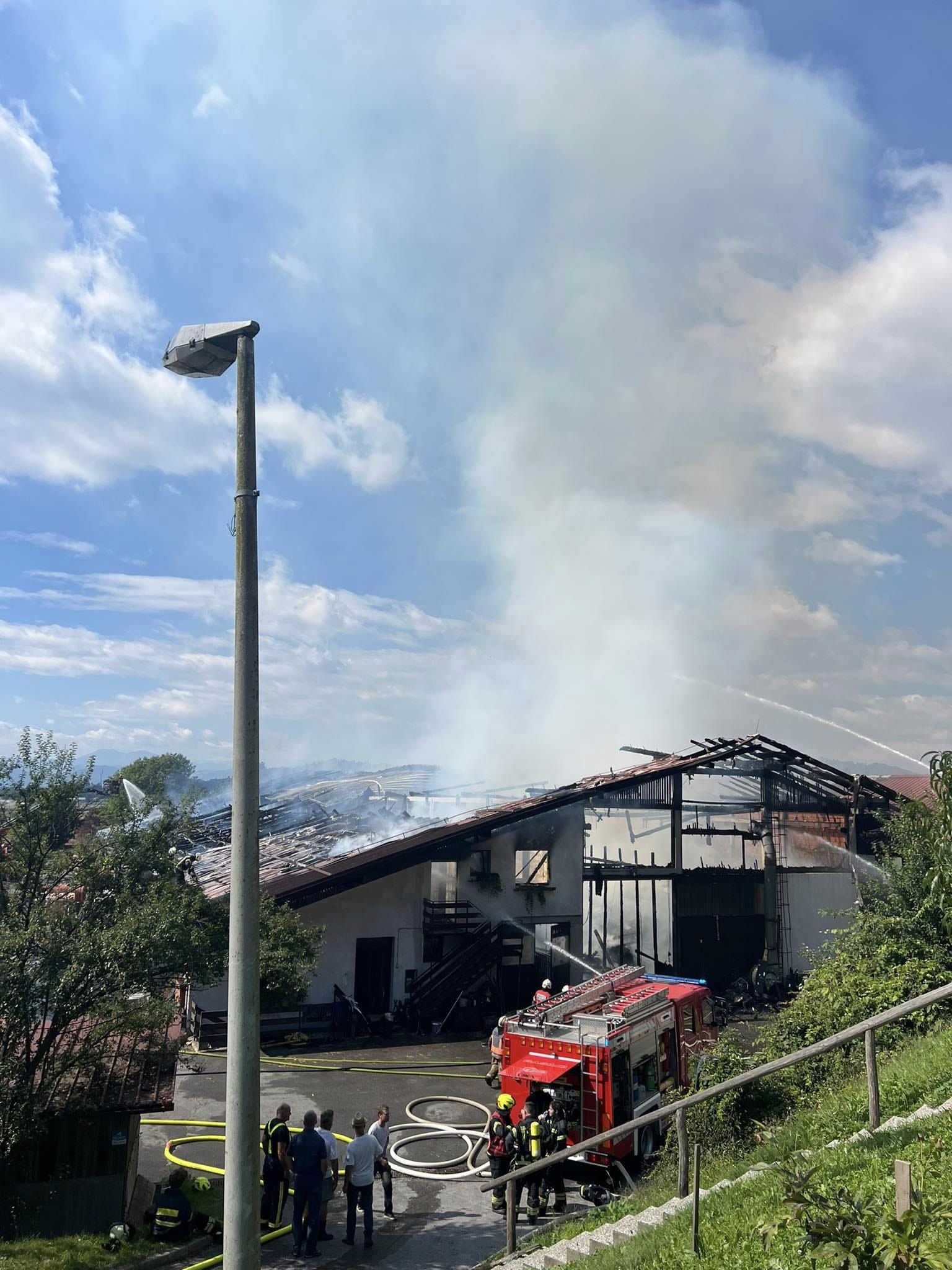 V Zavrhu pod Šmarno goro je včeraj okoli 13. ure prišlo do požara na večjem kmetijskem objektu. Zagorelo je gospodarsko poslopje Kmetije Mis v izmeri 40 x 80 metrov, v neposredni bližini rojstne hiše Jakoba Aljaža.