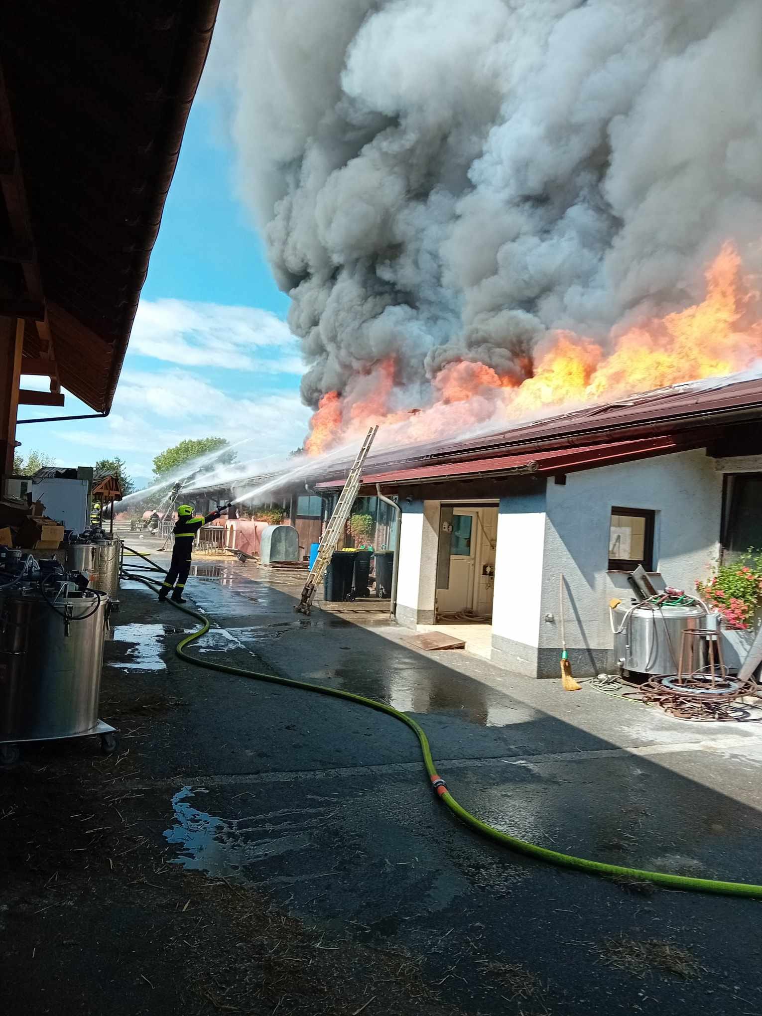 Vseh 130 glav živine so pravočasno rešili, prav tako so rešili večino kmetijske mehanizacije. Pred 14 leti so med prvimi na ostrešje hleva postavili veliko sončno elektrarno.