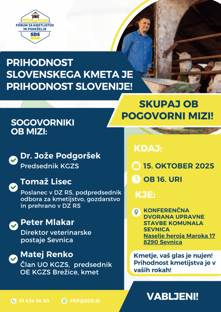 Pogovorna miza pod geslom Prihodnost slovenskega kmeta je prihodnost Slovenije je sklicana ob 16. uri, potekala bo v konferenčni dvorani upravne stavbe Komunale Sevnica (Naselje heroja Maroka 17 v Sevnici).