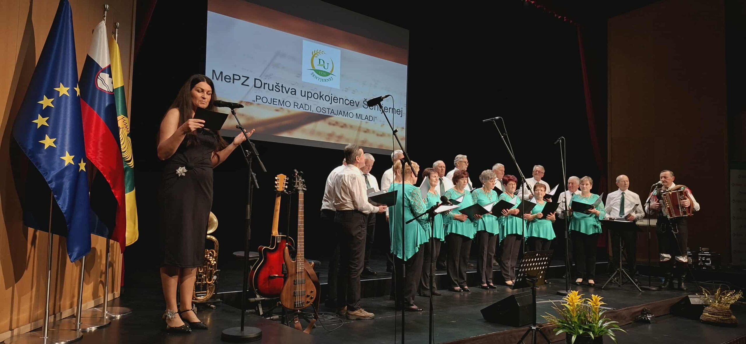 V Šentjerneju je v Kulturnem centru Primoža Trubarja v soboto, 22. novembra 2025, potekal izjemno čustven pevski koncert Mešanega pevskega zbora Društva upokojencev Šentjernej, ki je znova dokazal, kako živa, dragocena in povezujoča ostaja slovenska pesem. Pod skupno mislijo “Pojemo radi, ostajamo mladi” so se na odru zbrali tako domači pevci kot številni gostje, ki so s svojo zavzetostjo, toplino in glasbeno predanostjo ustvarili večer, prežet z lepoto ljudske pesmi, nostalgičnimi melodijami ter neponovljivo medgeneracijsko energijo.