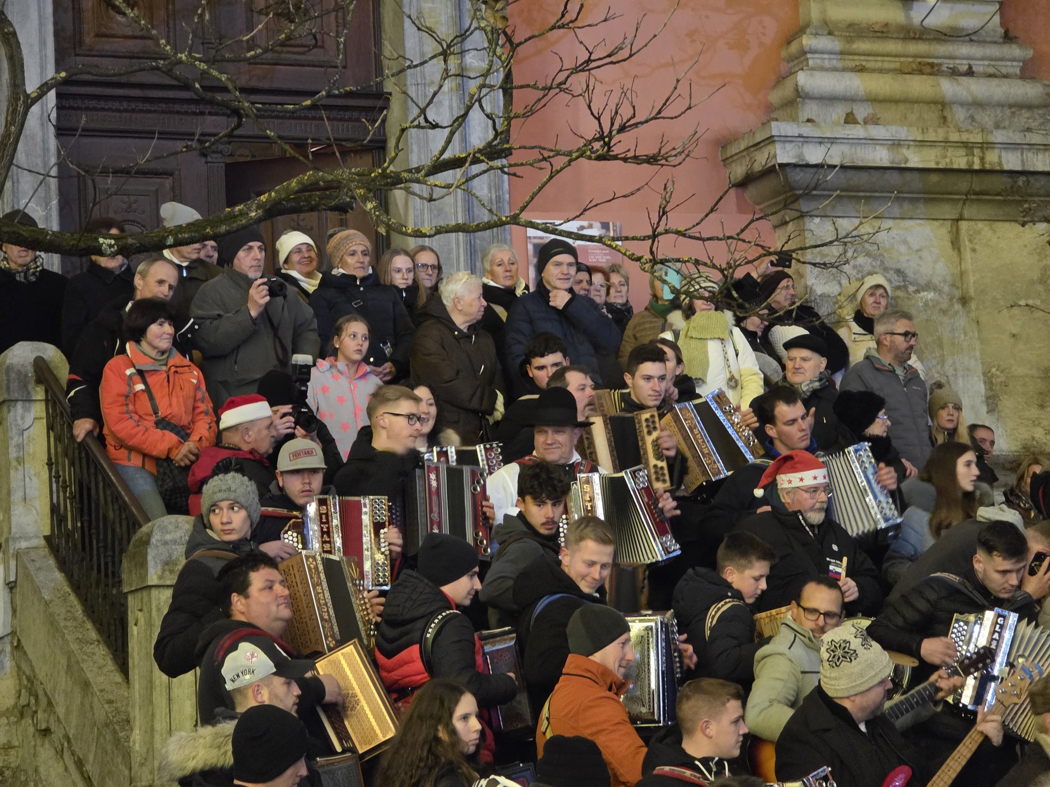 Sinoči je na Prešernovem trgu v Ljubljani potekal shod harmonikarjev v podporo slovenski glasbi, ki se ga je udeležilo več kot 100 harmonikarjev.