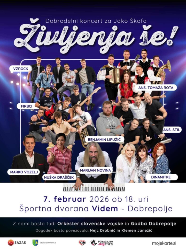 V športni dvorani Videm – Dobrepolje bo danes, 7. februarja, ob 18. uri, potekal dobrodelni koncert za Jako Škofa. Nastopilo bo več ansamblov in posameznikov.