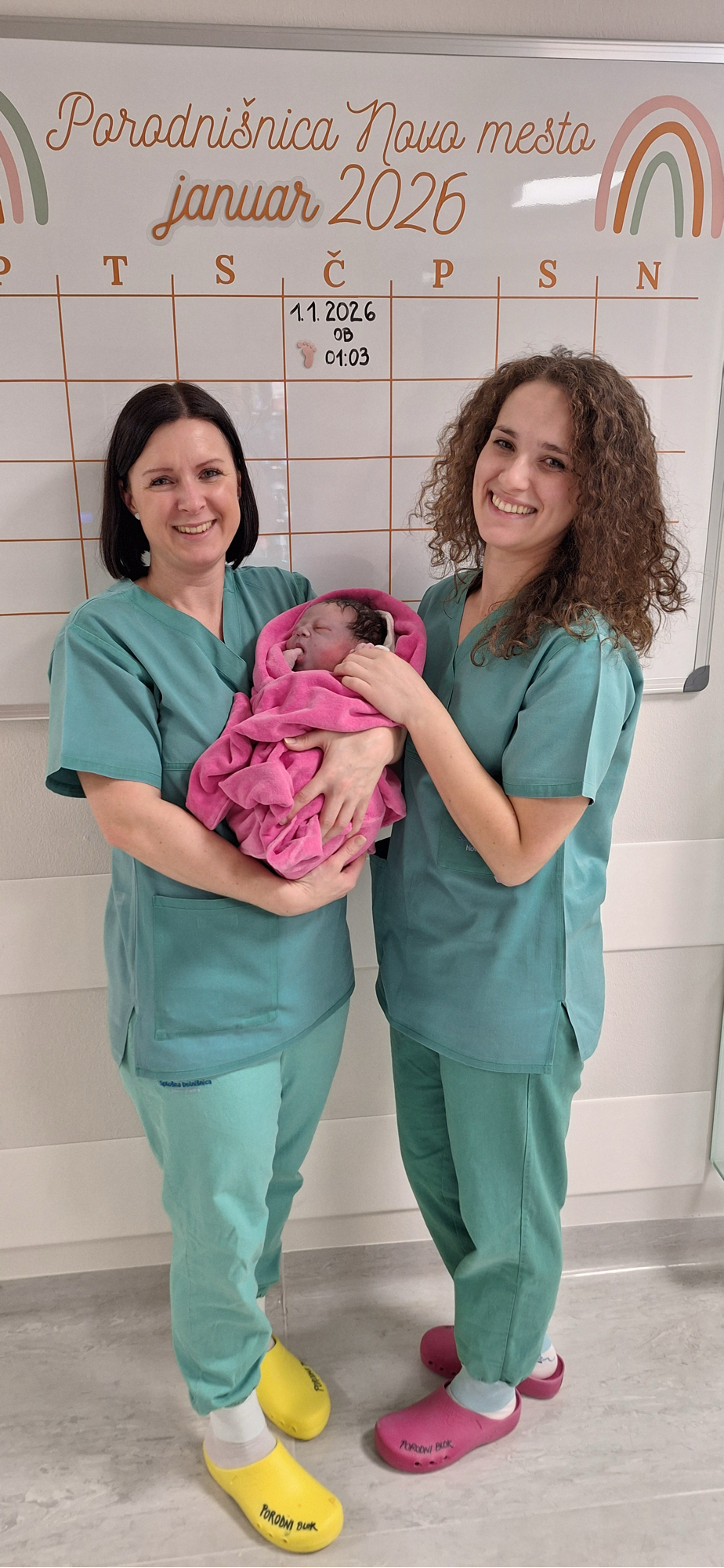 Kot prvi otrok v letu 2026 v Sloveniji je danes dve minuti čez polnoč zavekala deklica Sara v ljubljanski porodnišnici. Težka je 3120 gramov. Novomeška porodnišnica pa je objavila, da so prvo novorojenko v letu 2026 pozdravili ob 1.03.