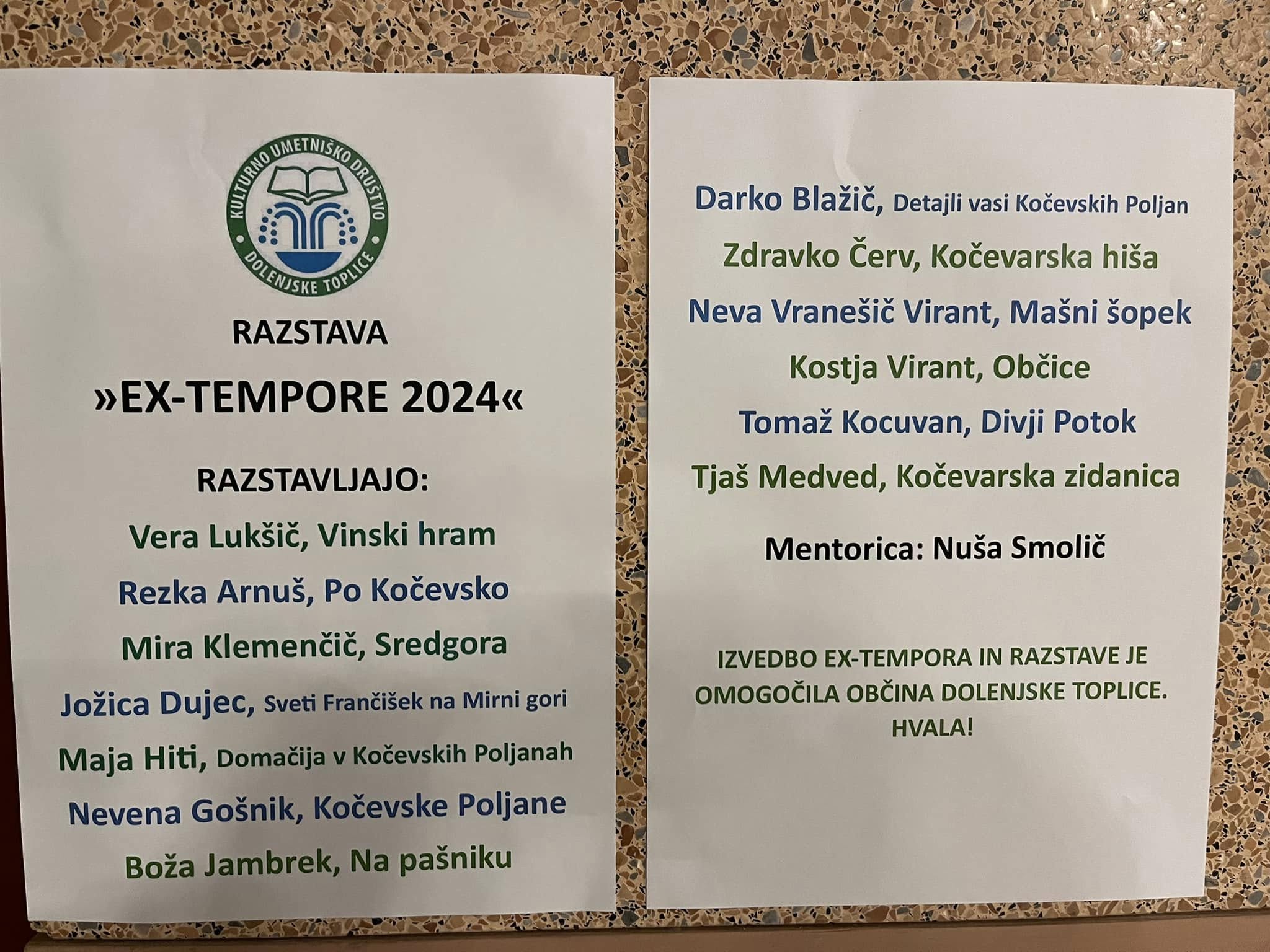 Izvedbo razstave je omogočila Občina Dolenjske Toplice, za kar se jim organizatorji zahvaljujejo.