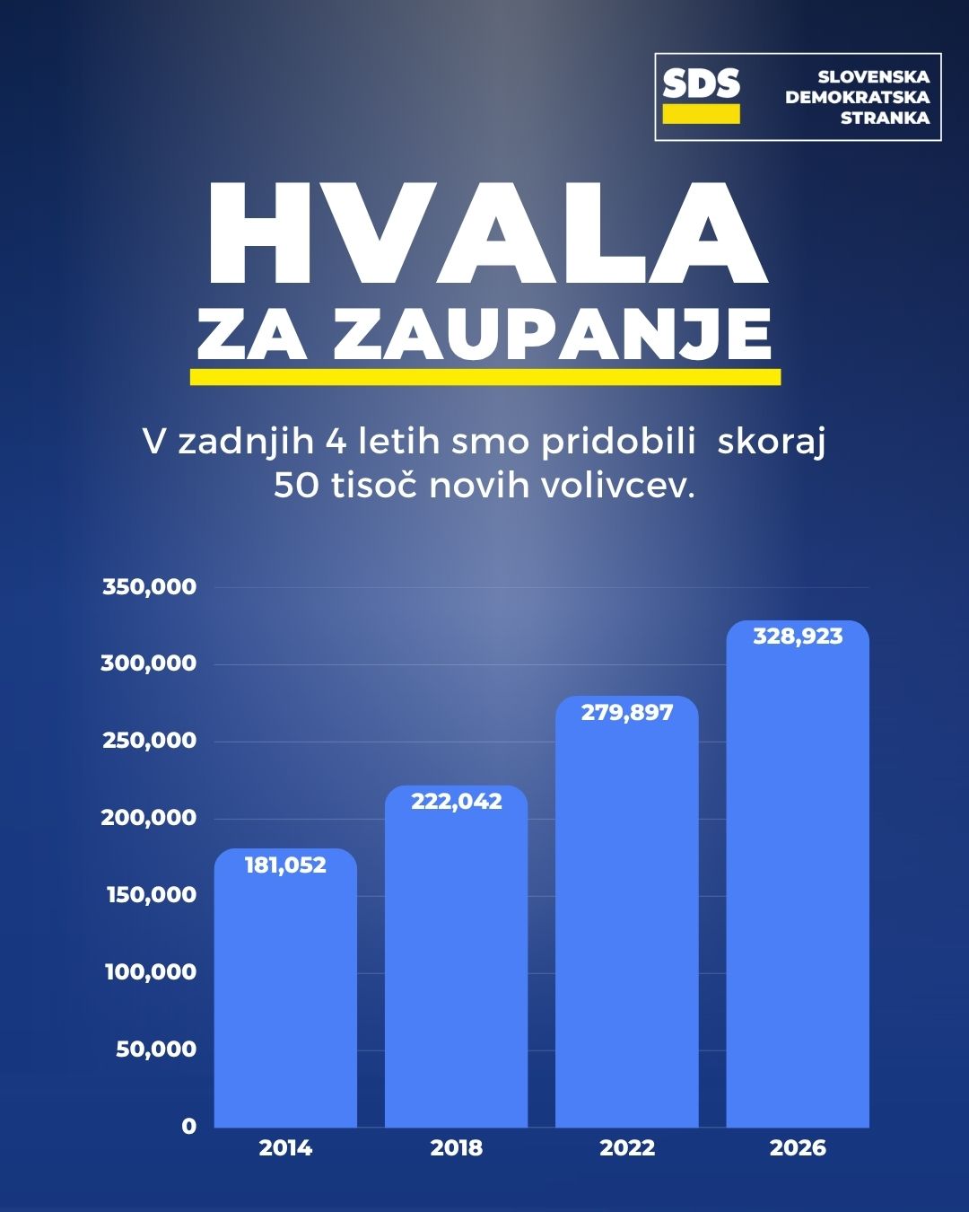 V samo štirih letih (od 2022 do 2026) je stranka pridobila skoraj 50.000 novih volivcev. Od leta 2014 pa kar 147.871 novih volivcev.