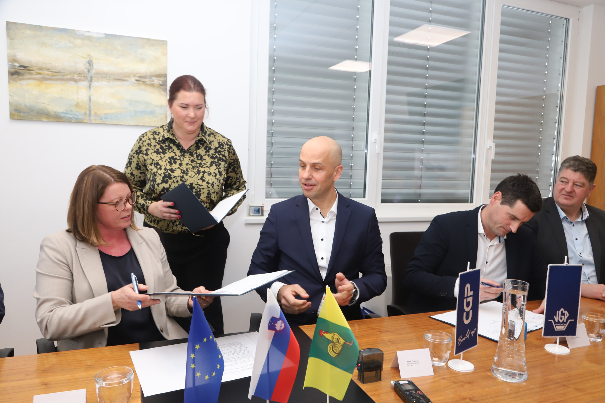 Pogodbo so ob navzočnosti ministra za naravne vire in prostor Jožeta Novaka ter šentjernejskega župana Jožeta Simončiča podpisali v. d. direktorice Direkcije RS za vode dr. Lidija Kegljevič Zagorc in predstavnika dveh podjetij, ki bosta izvedli dela – predsednik uprave CGP Martin Gosenca in Marko Plesec iz podjetja VGP Novo mesto.