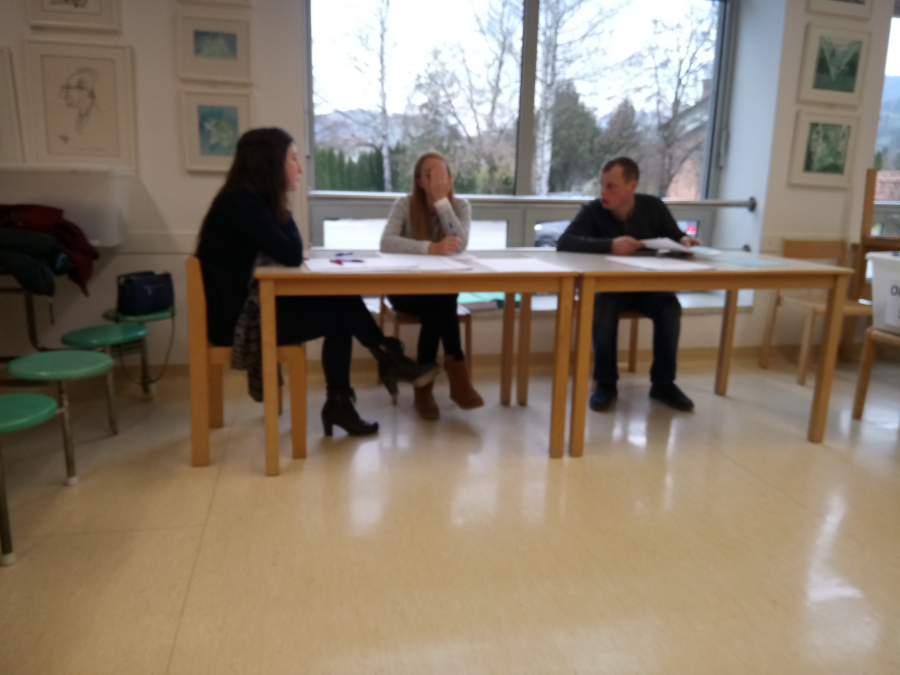 Fotografije, ki dokazujejo, kaj se je 18. novembra 2018 v dopoldanskem času dogajalo na volišču št. 003, ko je namestnica predsednice VO položila glasovnice na poličko pri oknu in je sedela pred glasovnicami. Poleg je bil nastavljen kemični svinčnik.