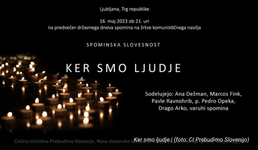 Slovenija danes obhaja 17. maja narodni dan spomina na žrtve komunističnega nasilja. Na predvečer tega dne so sicnoči ob 21. uri na Trgu republike v Ljubljani Civilna iniciativa Prebudimo Slovenijo, Vseposvojitev, Nova Slovenska zaveza in Združeni ob lipi sprave pripravili posebno. V kulturnem programu so sodelovali misijonar Pedro Opeka ter umetniki Marko Fink, Pavle Ravnohrib, Ana Dežman in Drago Arko.