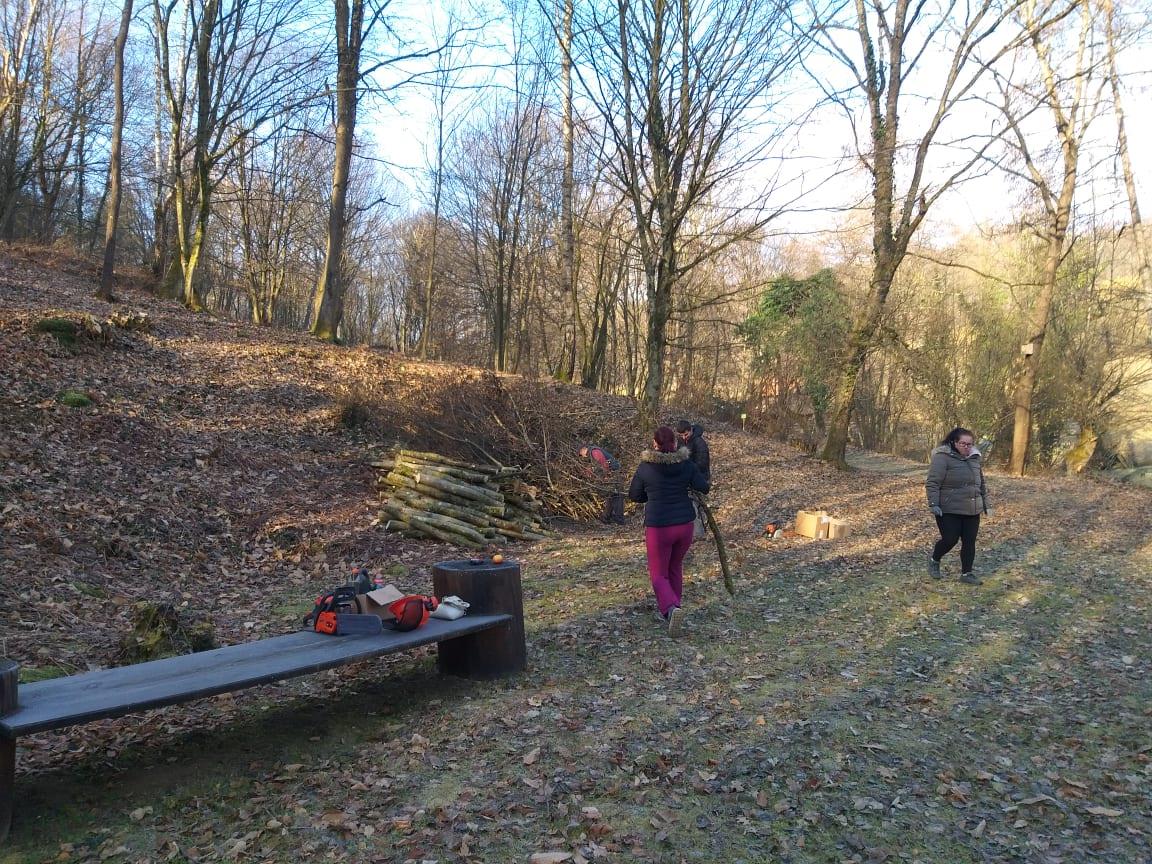 Na območju, kjer bo v okviru projekta Herbalium nastalo gledališče v gozdu in gozdna knjižnica, so pospravili odvečno vejevje in drugo zarast ter pograbili listje.